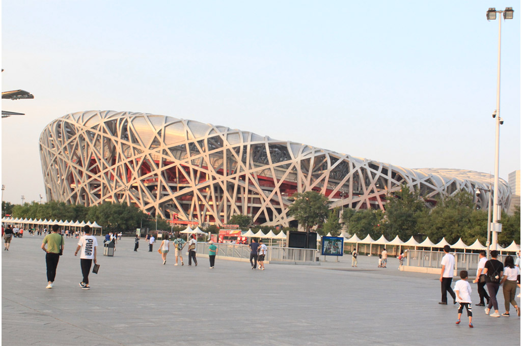 爬完長城,感受了歷史勞動人民的智慧后,我們又來到奧林匹克花園,充分見證了現(xiàn)代建筑的力量。橢圓形的鳥巢邊緣平滑,放形的水立方菱角分明,雄壯溫馨的鳥巢,優(yōu)雅夢幻的水立方,緊密呼應(yīng),對比強烈,走近他們,仿佛還能感受到空氣中彌漫的奧運選手們揮灑的汗水的味道和觀眾們熱情的歡呼。